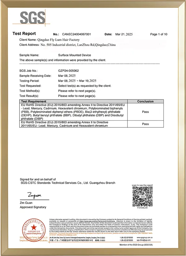 Nossa produção de extensões de cabelo atendeu aos padrões da União Europeia, passou nas certificações CE e RoHS; recebemos a certificação de vendedor ouro.