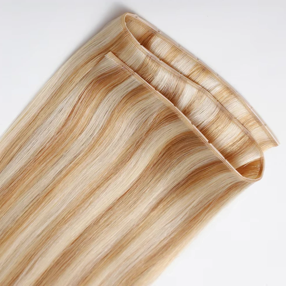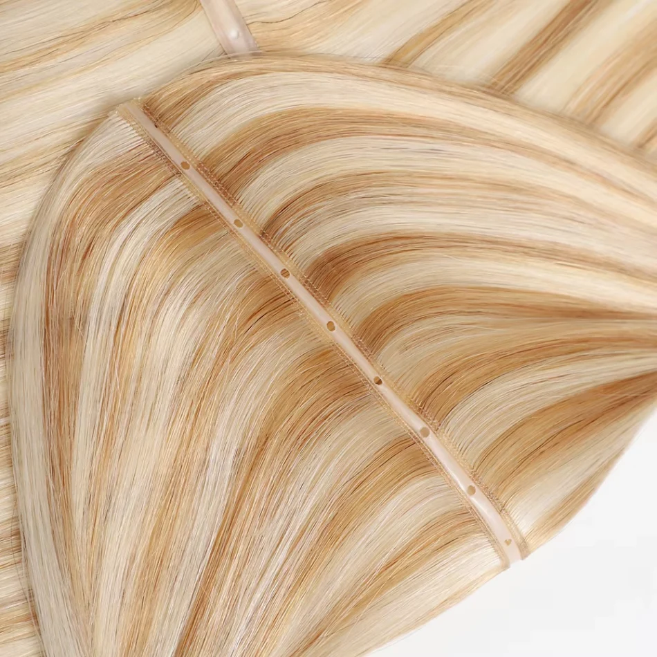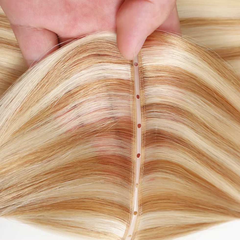 Movimento Natural e Mistura:A estrutura intencional da trama imita o crescimento natural do cabelo, por isso combina de forma invisível com as mechas existentes e se move com cada gesto do cliente, sem nenhum acabamento rígido e artificial aqui.
