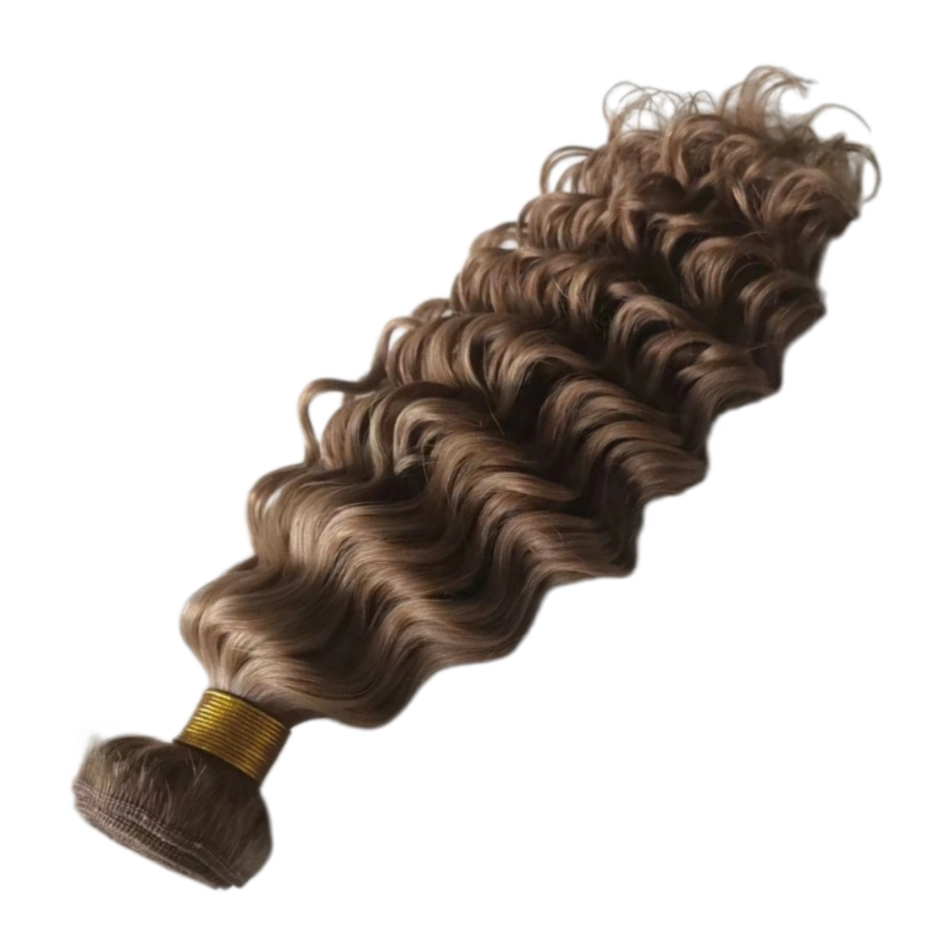 Onda Profunda As extensões de cabelo cacheado continuam sendo a primeira escolha no mercado, e as ondas profundas são um dos estilos mais populares. Possui cachos espirais claros e consistentes que mantêm bem sua forma, oferecendo uma textura equilibrada entre ondas corporais e cachos crespos. Com volume médio e não muito pesado, essa onda versátil funciona tanto para looks casuais do dia a dia quanto para penteados mais formais e sofisticados. Ideal para quem deseja cachos saltitantes, duradouros e com bastante dimensão. A trama de ondas profundas é perfeita para clientes de salão e usuários finais que buscam criar estilos cacheados glamorosos e fluidos com forte retenção de cachos.