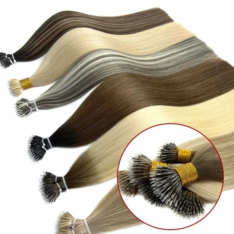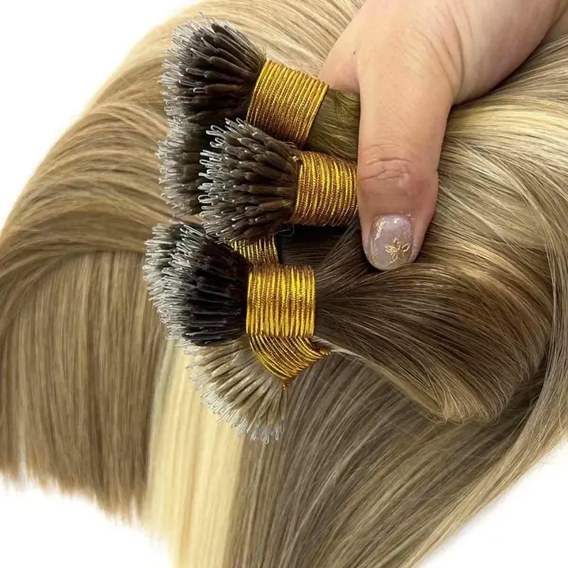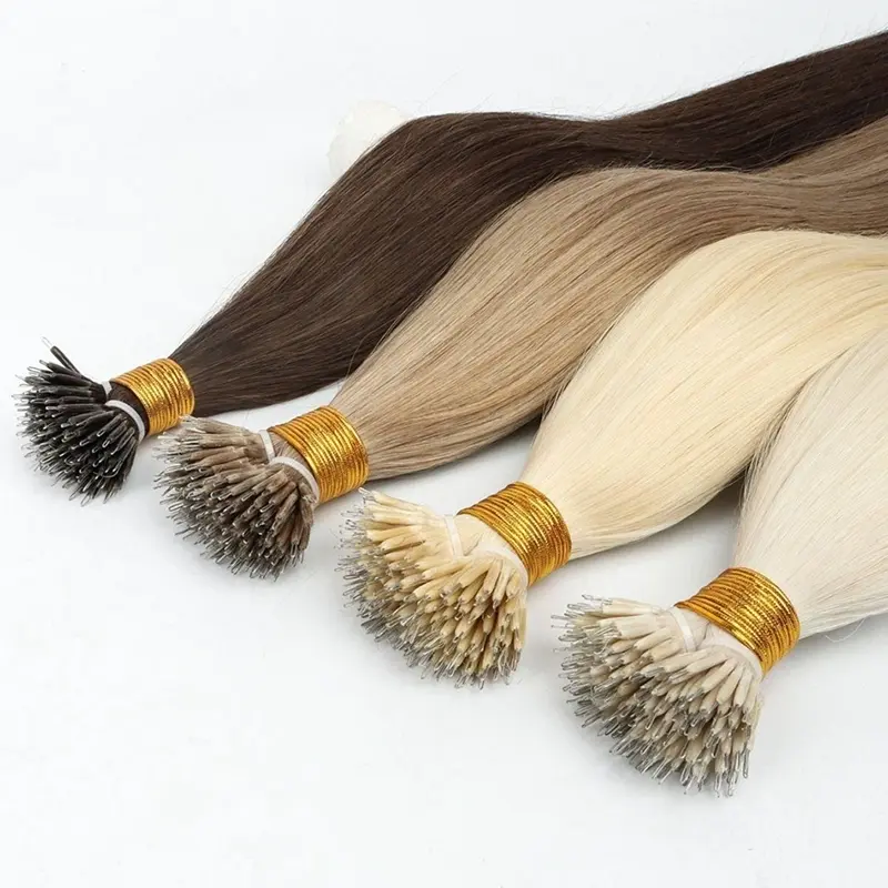 A Lum Hair, como fabricante experiente, apresenta as requintadas extensões de cabelo nano russas, uma obra-prima de qualidade e artesanato. Essas extensões são meticulosamente elaboradas a partir da cutícula do cabelo Remy, garantindo uma aparência natural que combina perfeitamente com o seu próprio cabelo. As extensões de cabelo loiras Remy nano mantêm a cor e a textura mais populares da raiz às pontas na Europa, proporcionando sempre um acabamento impecável.