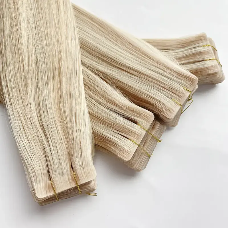 Demanda crescente do mercado: Celebridades e influenciadores de mídia social têm aumentado a popularidade da fita invisível em extensões recentemente. Os clientes agora estão buscando ativamente esse estilo, portanto, fazer pedidos no atacado de um fornecedor chinês de extensões de cabelo Remy pode ajudá-lo a atrair mais clientes que desejam soluções de cabelo modernas e de primeira linha.